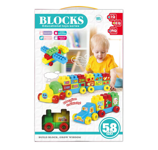 Jeu de Blocs Éducatifs – Coffret 58 pièces avec train