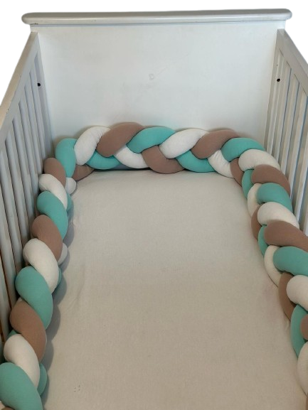 Tour de Lit Tressé – Vert, Beige et Blanc