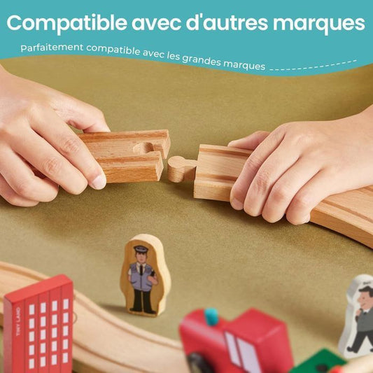 Circuit de Construction en Bois – 72 Pièces avec Locomotives Magnétiques