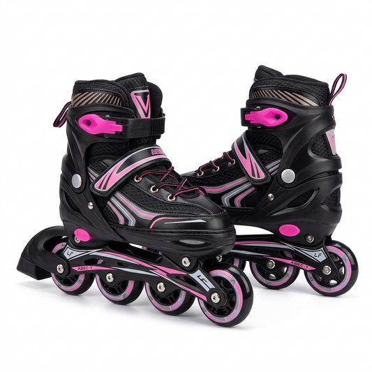 Rollers Évolutifs Noir avec détails en Rose + Kit de Protection Complet