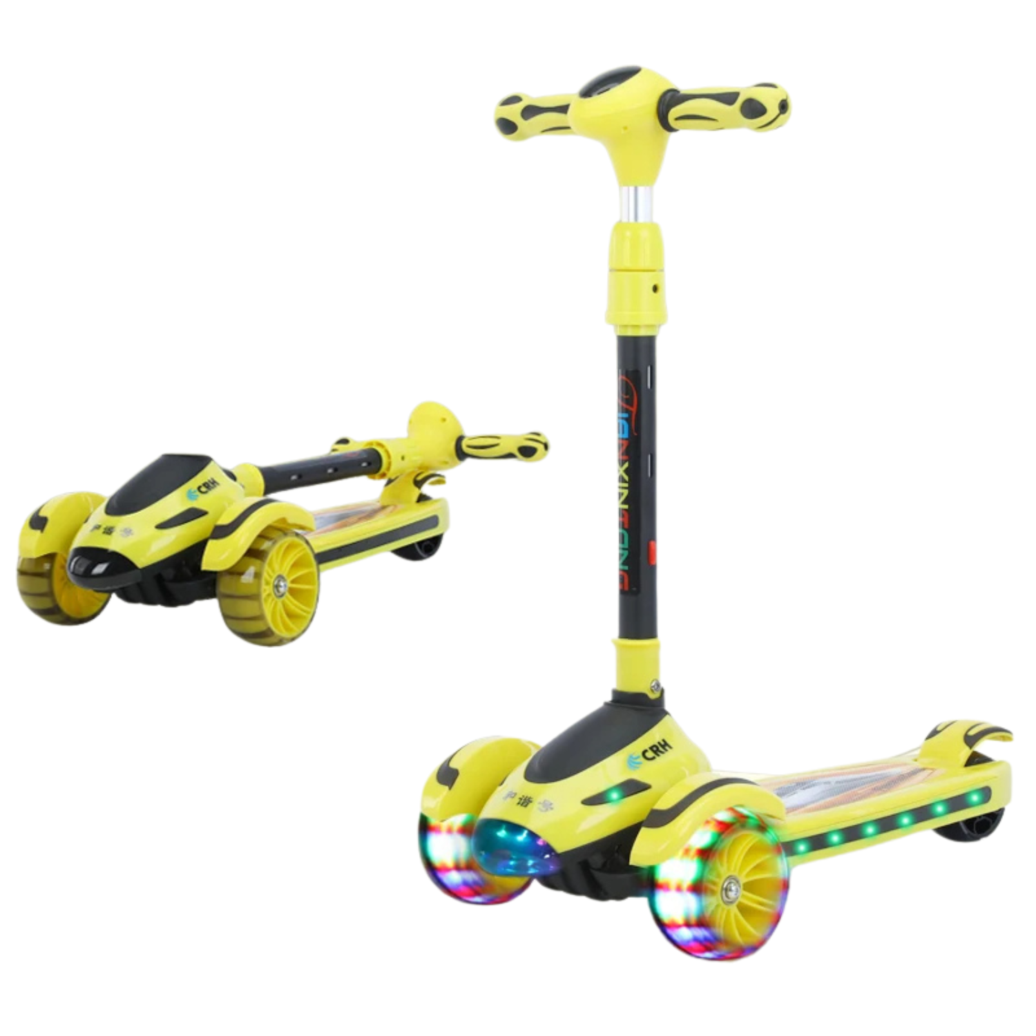 Une trottinette évolutive et ludique, parfaite pour les enfants de 3 à 14 ans, avec des roues lumineuses et un design inspiré des trains.