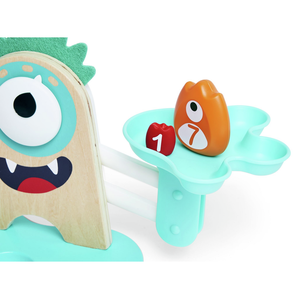 - Balance ajustable avec poids numérotés pour apprendre l’addition, la soustraction et l’équilibre.
