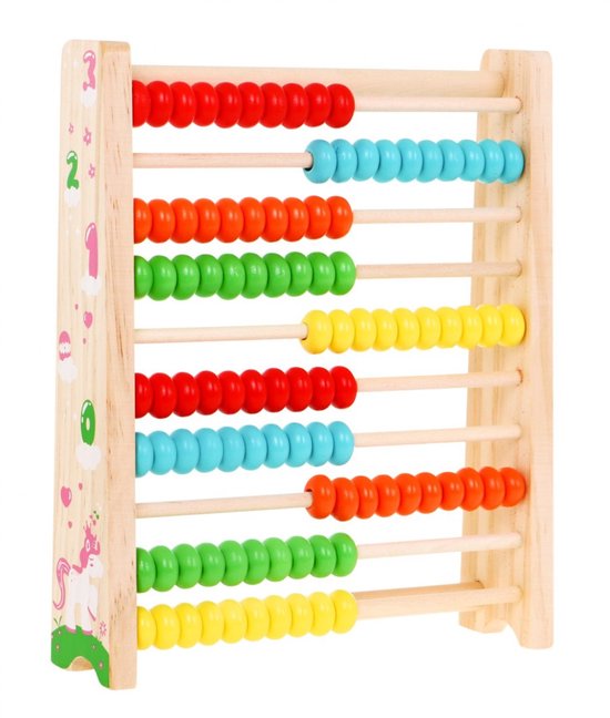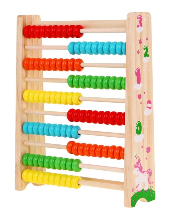Boulier coloré en bois décoré de licornes, idéal pour apprendre à compter tout en s’amusant.
