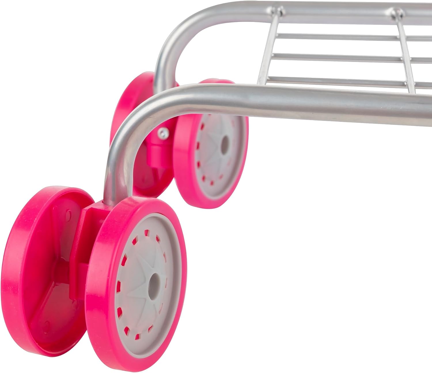 Un chariot de courses réaliste et pliable, parfait pour accompagner les enfants dans leurs jeux de marchande ou de cuisine.
