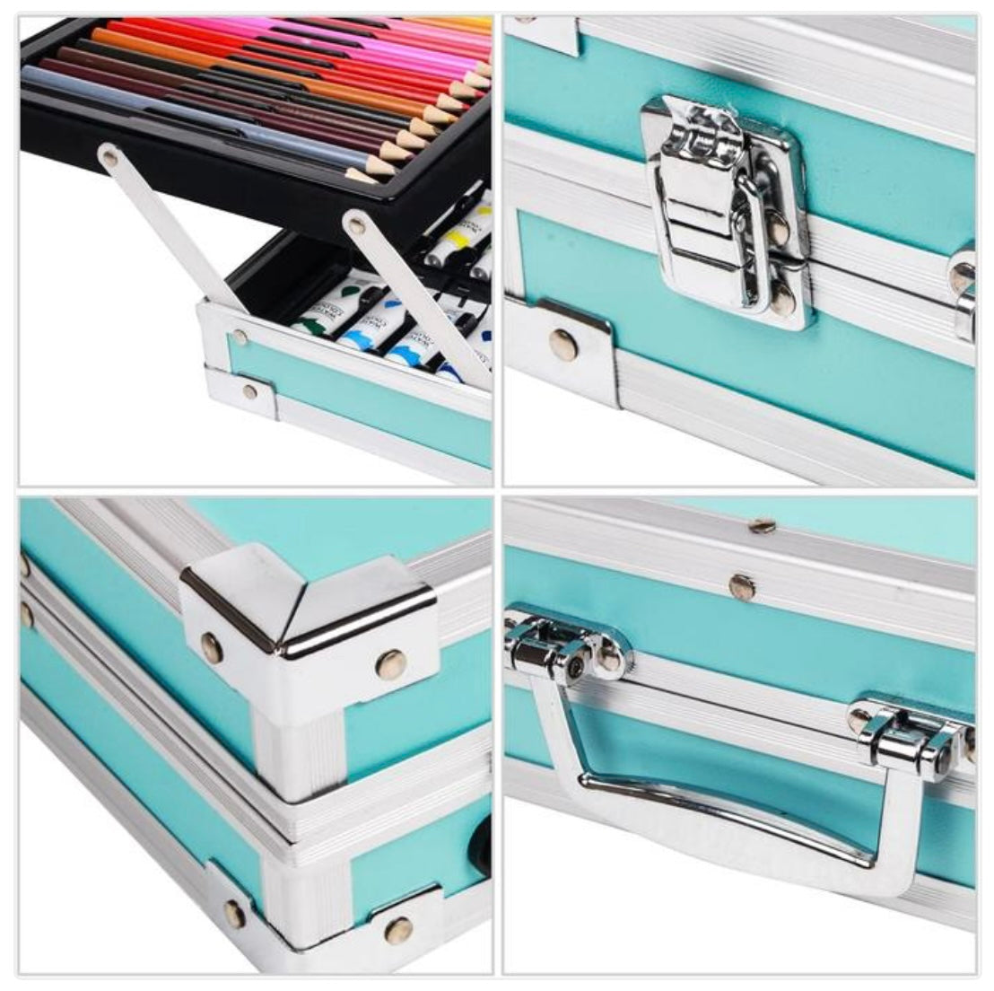 • Boîte en aluminium robuste et élégante : Offre une protection optimale pour transporter et ranger vos fournitures.