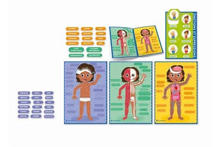 Avec ce jeu éducatif inspiré de la méthode Montessori, les enfants découvrent de façon ludique et interactive le corps humain, aussi bien à l’extérieur qu’à l’intérieur. Ils apprennent à identifier les principales parties du corps, les os, les muscles et les organes, tout en enrichissant leur vocabulaire grâce aux fiches d’information et aux étiquettes de lecture.