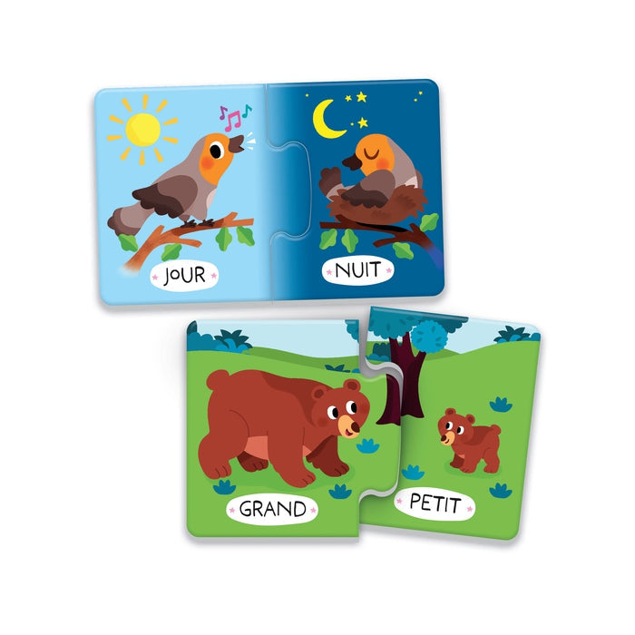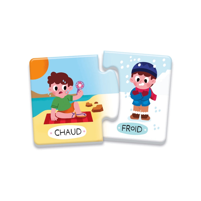 Avec Les Contraires de Clementoni, les enfants découvrent et assimilent les notions opposées grâce à 16 mini-puzzles illustrés. Chaque paire représente un mot et son contraire (chaud/froid, lourd/léger, plein/vide…), offrant une manière ludique et visuelle d’apprendre en jouant.