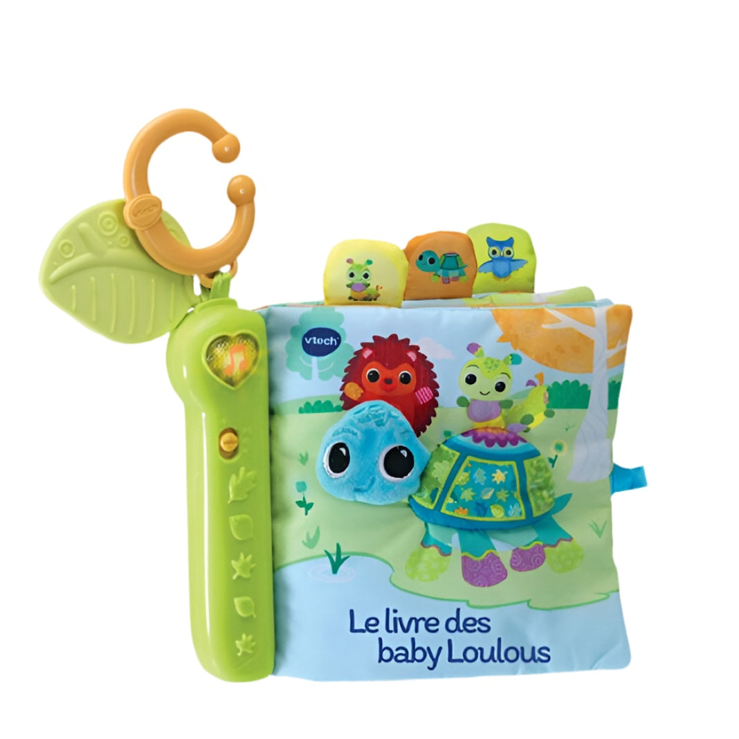 Un livre en tissu musical pour éveiller bébé à la nature et aux animaux, avec des sons et activités interactives.