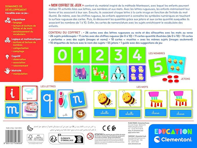 Initiez votre enfant à la lecture, à l’écriture et aux mathématiques avec ce coffret Montessori complet ! Grâce aux cartes rugueuses, l’enfant développe son sens du toucher tout en apprenant les lettres, les chiffres et les quantités.