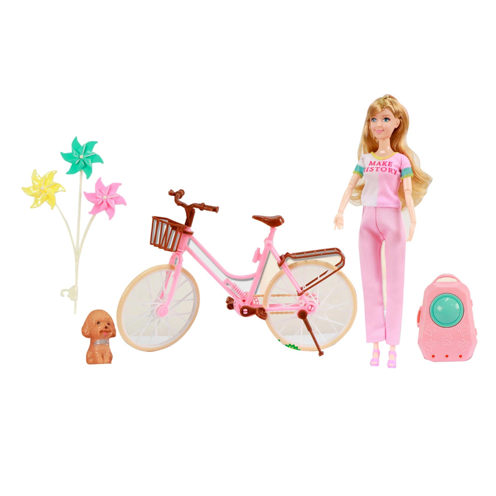 Poupée avec Vélo, Sac à Dos et Petit Chien – Jeu de Rôle Enfant