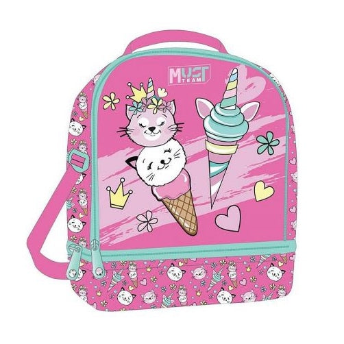 Un sac girly, fun et original avec des chats en cornet de glace et des couleurs pastel ! Léger, pratique et parfait pour la maternelle.