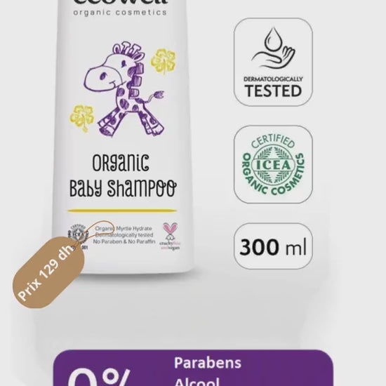 Prenez soin des cheveux et de la peau délicate de votre bébé avec le shampoing bio Ecowell. Sa formule douce à base d’ingrédients naturels et biologiques nettoie efficacement sans irriter, nourrit et rend les cheveux soyeux. Avec son huile d’orange bio et son eau de myrte bio, il protège et renforce le cuir chevelu sensible des tout-petits dès le premier lavage.