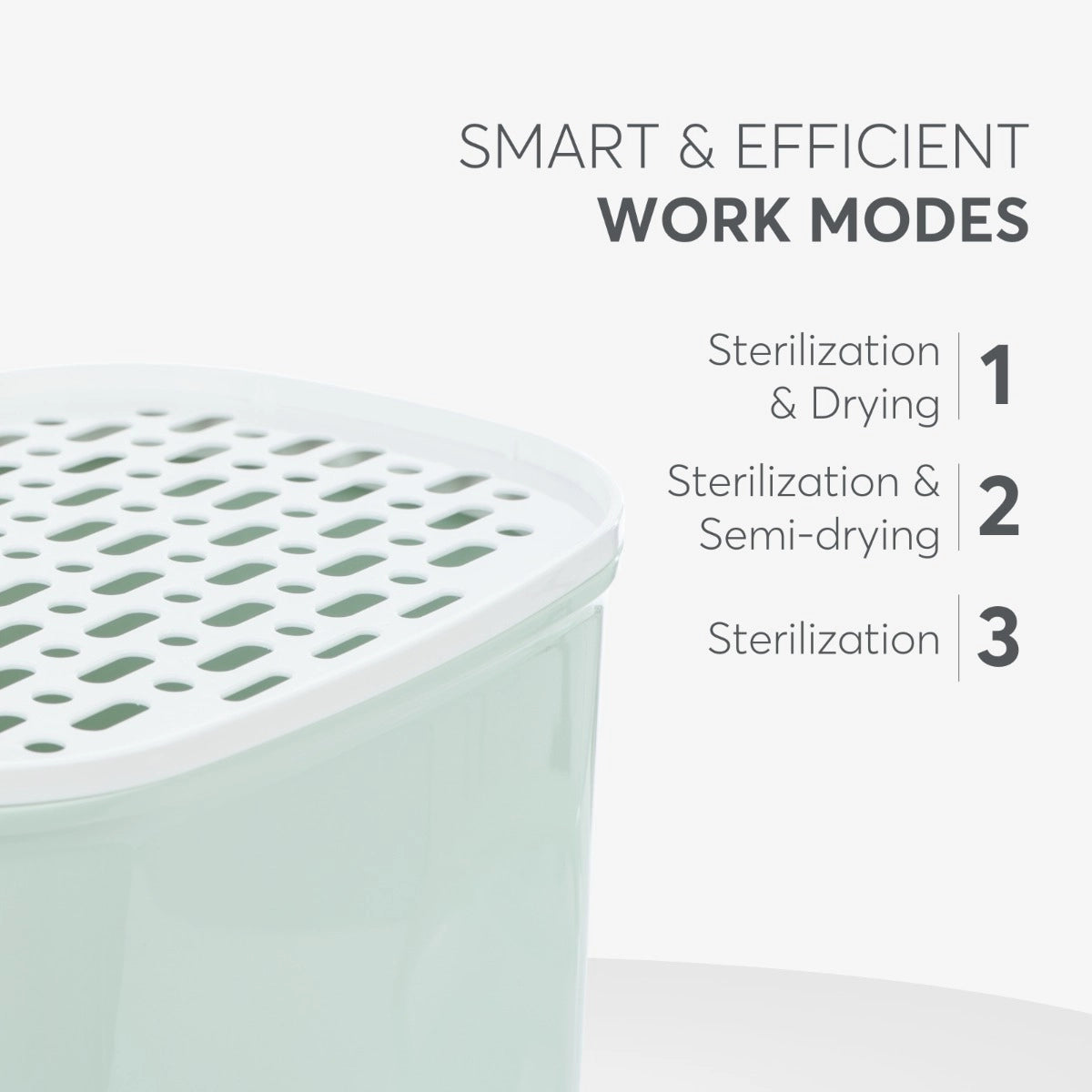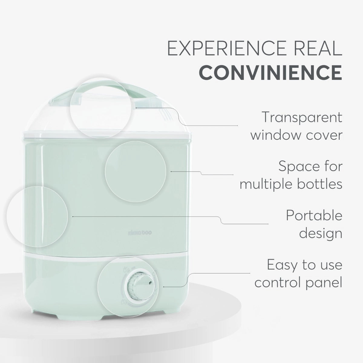 Le stérilisateur et sèche-biberon Cleo de Kikka Boo est l’allié idéal pour garantir une hygiène parfaite des biberons et accessoires de bébé. Rapide et efficace, il élimine jusqu’à 99,9 % des germes, offrant aux parents une solution pratique et sûre pour protéger la santé de leur enfant. Avec ses différents modes de fonctionnement et sa grande capacité, il s’adapte aux besoins quotidiens tout en restant compact et facile à utiliser.