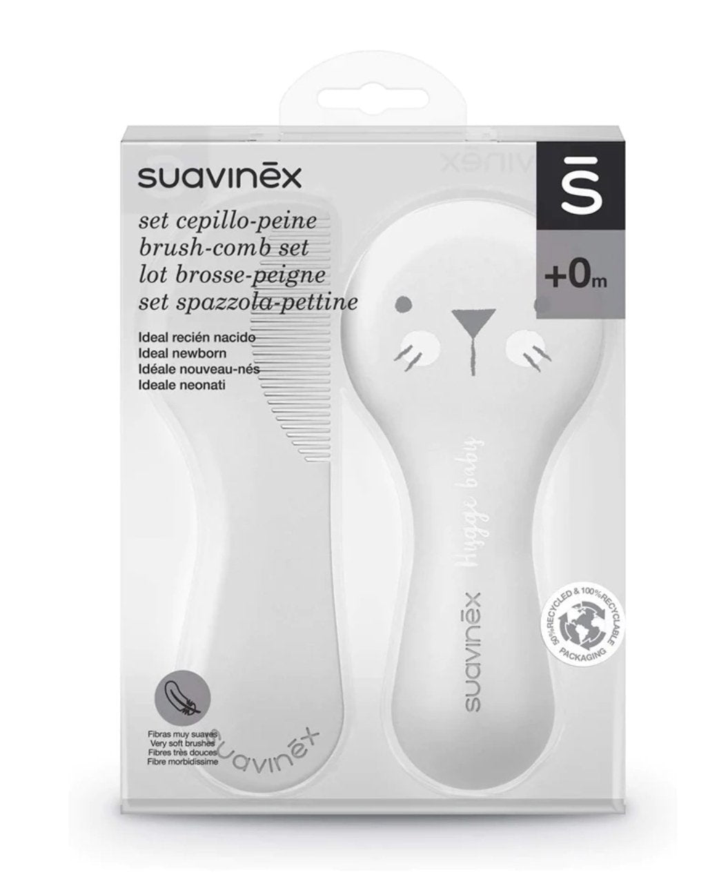 Le set brosse et peigne Suavinex est spécialement conçu pour prendre soin des cheveux délicats de bébé en toute sécurité. La brosse aux poils souples respecte le cuir chevelu sensible, tandis que le peigne aux bords arrondis permet un coiffage doux et sans risque. Pratique et ludique, ce coffret est décoré de jolis motifs pour accompagner les premiers soins de votre enfant.