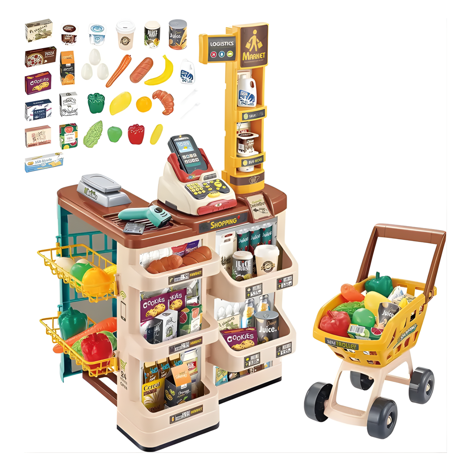 Supermarché Jouet avec Caisse et Chariot – 48 Pièces