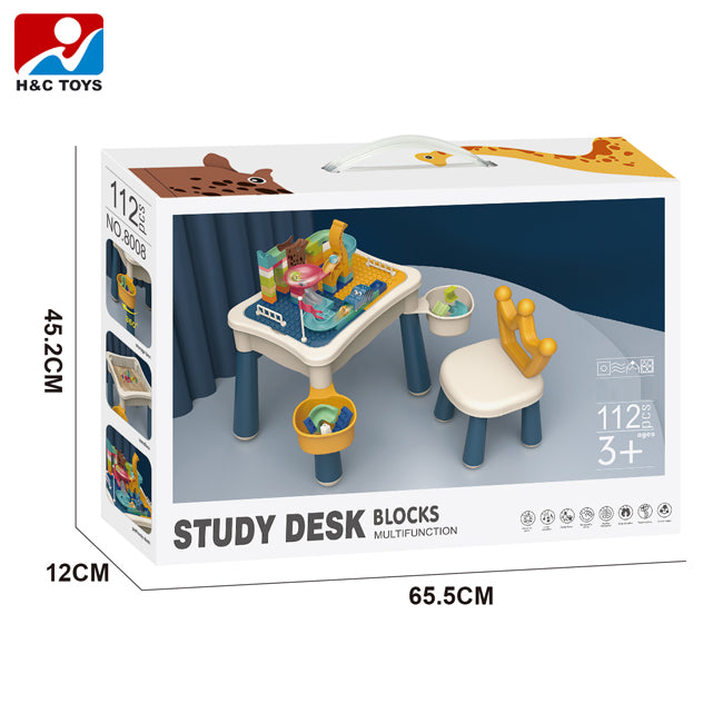 Table avec Jeu de Construction – 106 Éléments + Chaise et Planche à Dessin