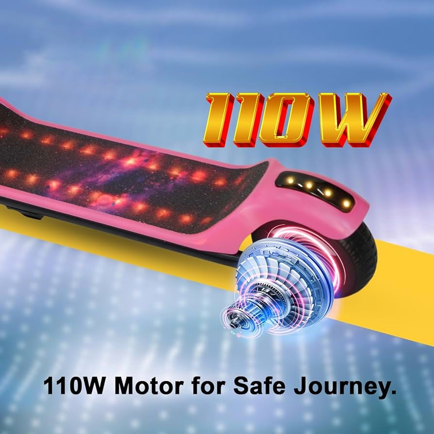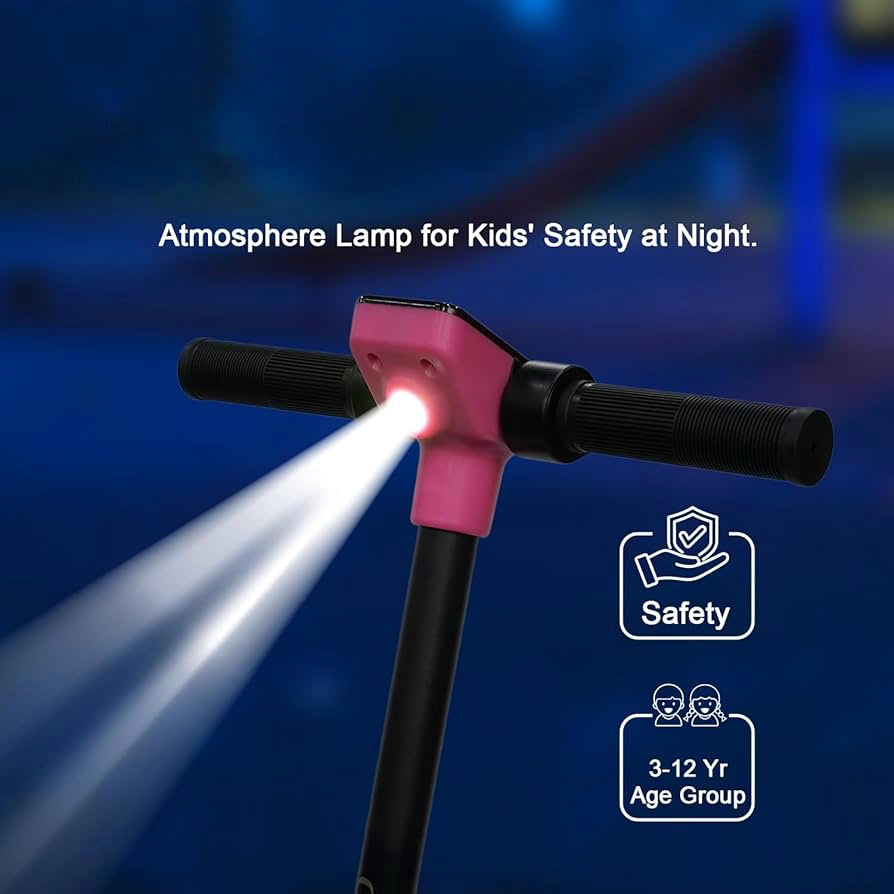Trottinette électrique légère et pliable, parfaite pour les enfants qui aiment s’amuser en toute sécurité. Elle offre une conduite fluide avec éclairage LED, écran digital et haut-parleur Bluetooth pour encore plus de plaisir lors des balades.