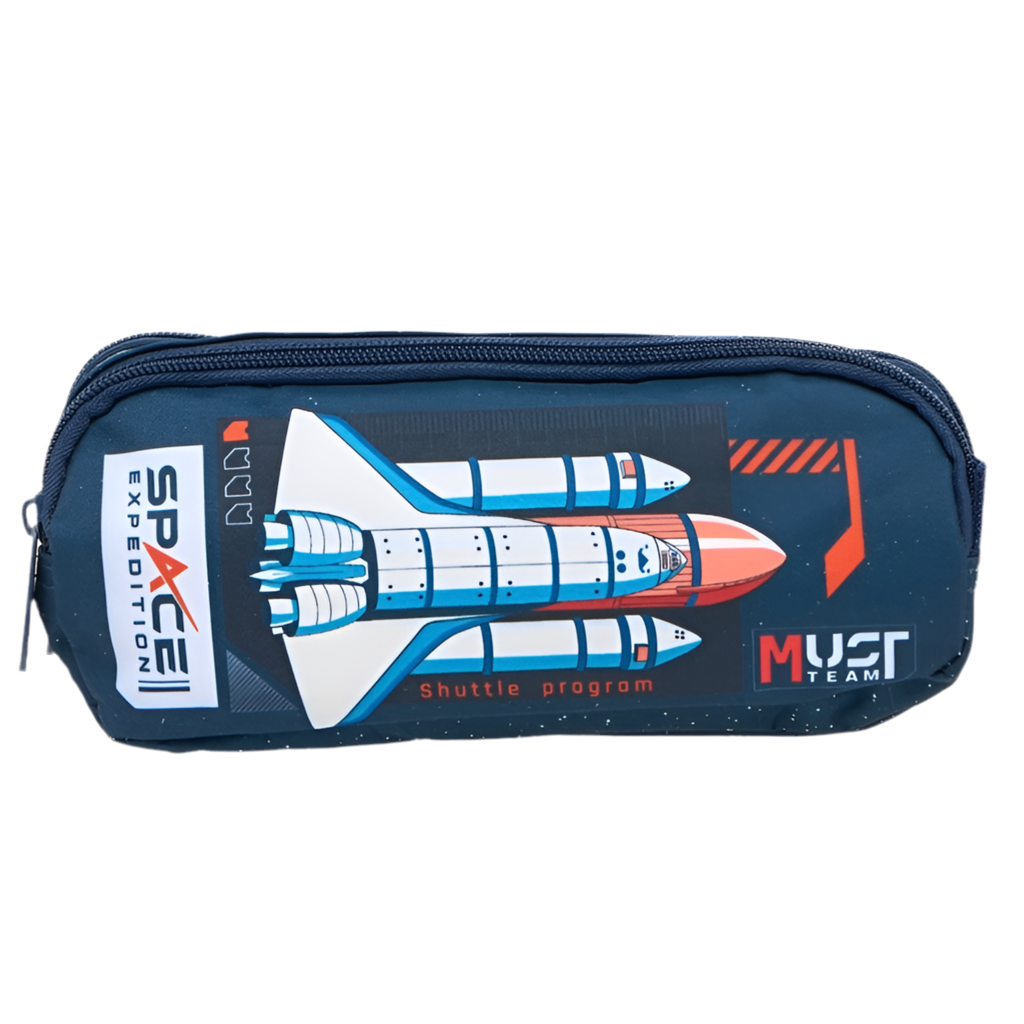 Trousse spatiale pour rêveurs et explorateurs ! Design fusée + espace, parfaite pour une rentrée pleine de découvertes.